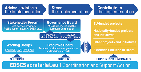 The H2020 project EOSCsecretariat.eu is delivering 360° support to the European Open Science Cloud (EOSC) Governance. Specifically, it addresses the need for the set-up of an operational framework supporting the overall Governance of the EOSC.